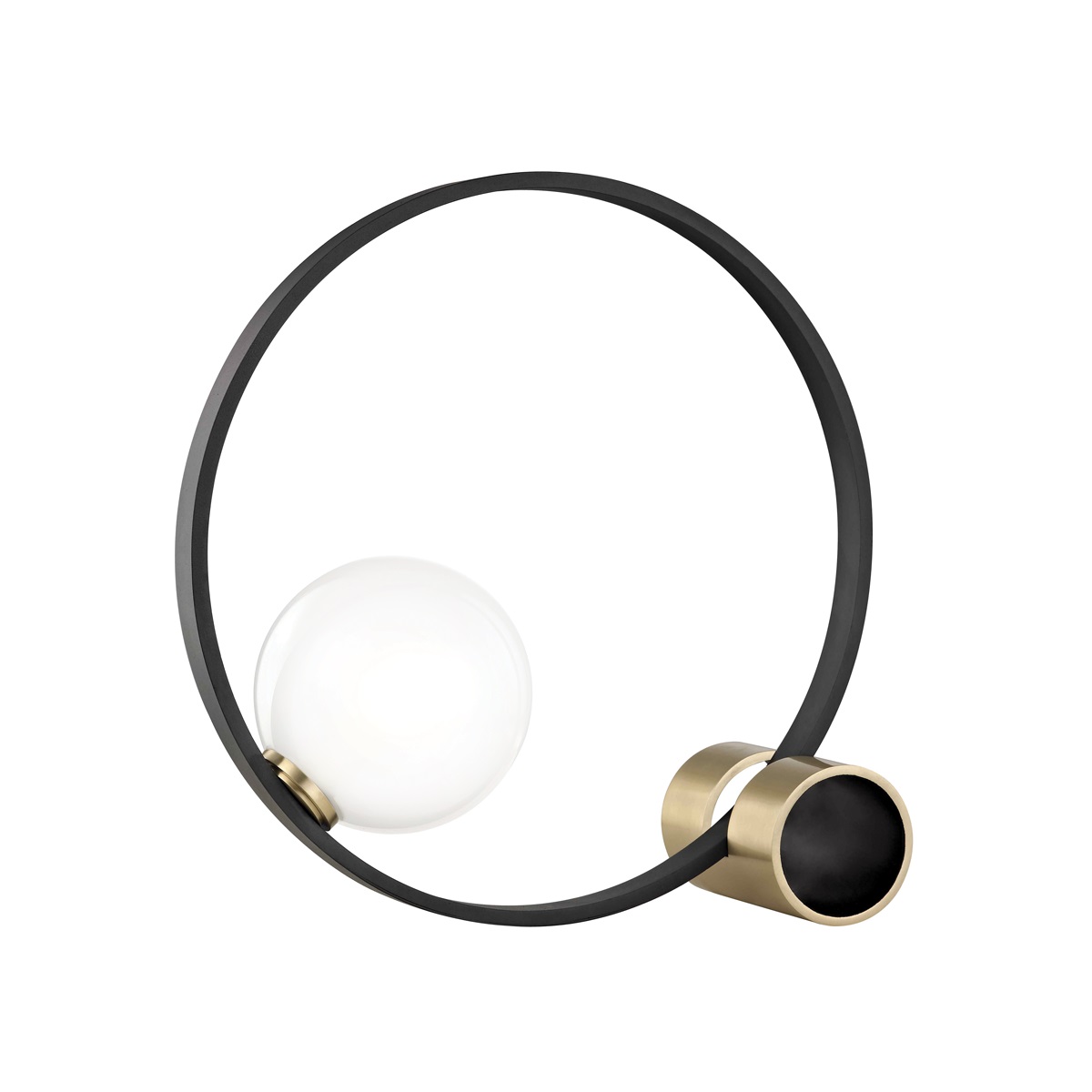 Элегантная настольная лампа с каркасом из полированного никеля и плафоном из матового стекла опалового цвета. Сферический плафон закреплен на черном кольце-орбите, которое установлено в прорези цилиндрического основания серебряного цвета. Благодаря уникальному дизайну эта лампа станет центром притяжения вашего интерьера.